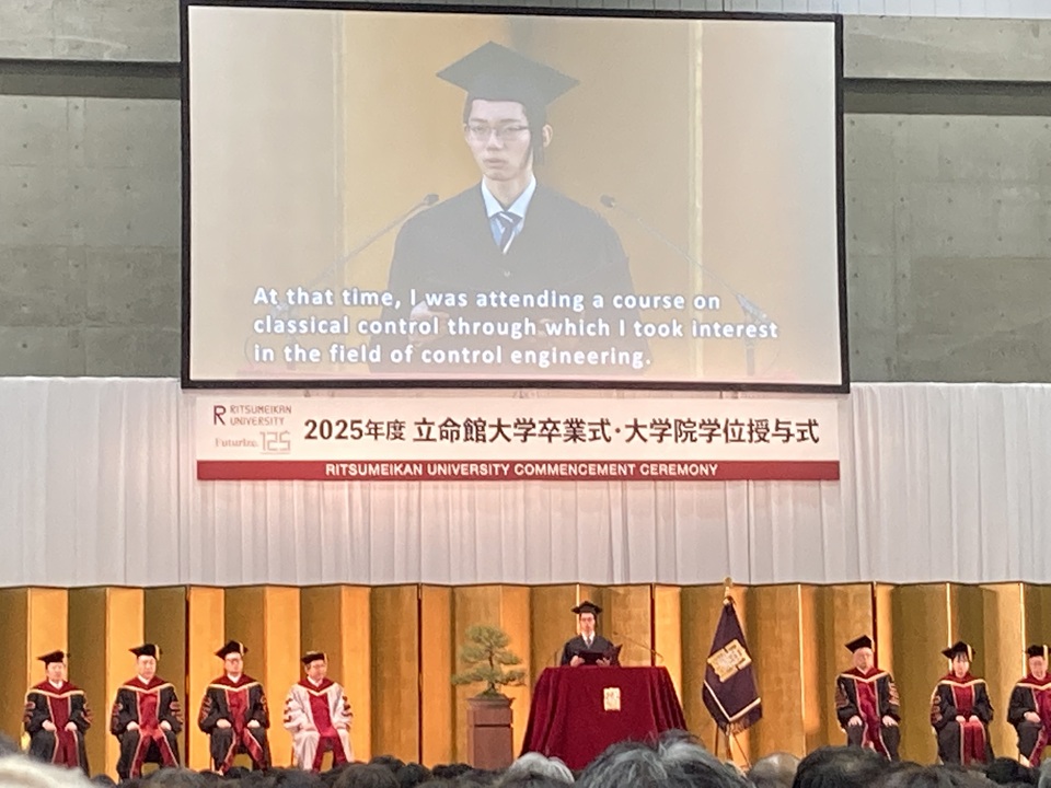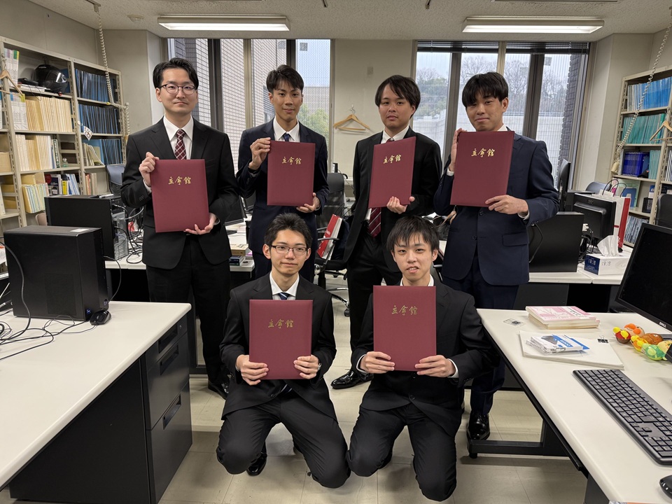 - 2026 3/22 卒業式・修了式が行われました.当研究室からはB4 7名,M2 4名が卒業・修了しました.今年は当研究室の小川和真君が理工学部の総代を務めました.今後の社会での活躍を期待しています!